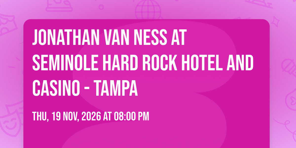 ✨ Enter a world of endless possibilities at Jonathan Van Ness at Seminole Hard Rock Hotel and Casino - Tampa, where every moment tells a story! 🏛️ The stunning Seminole Hard Rock Hotel and Casino - Tampa in vibrant Tampa, FL transforms into a realm of wonder on November 19th, 2026 at 08:00 PM. 🌟 They have crafted an experience that goes beyond the ordinary, combining elements of surprise, delight, and pure entertainment. Every detail has been thoughtfully considered to ensure your journey with us is nothing short of extraordinary. 🎯 Join fellow adventure seekers and memory makers in this celebration of imagination and innovation. 🎊 Reserve your spot today and be part of something truly special!