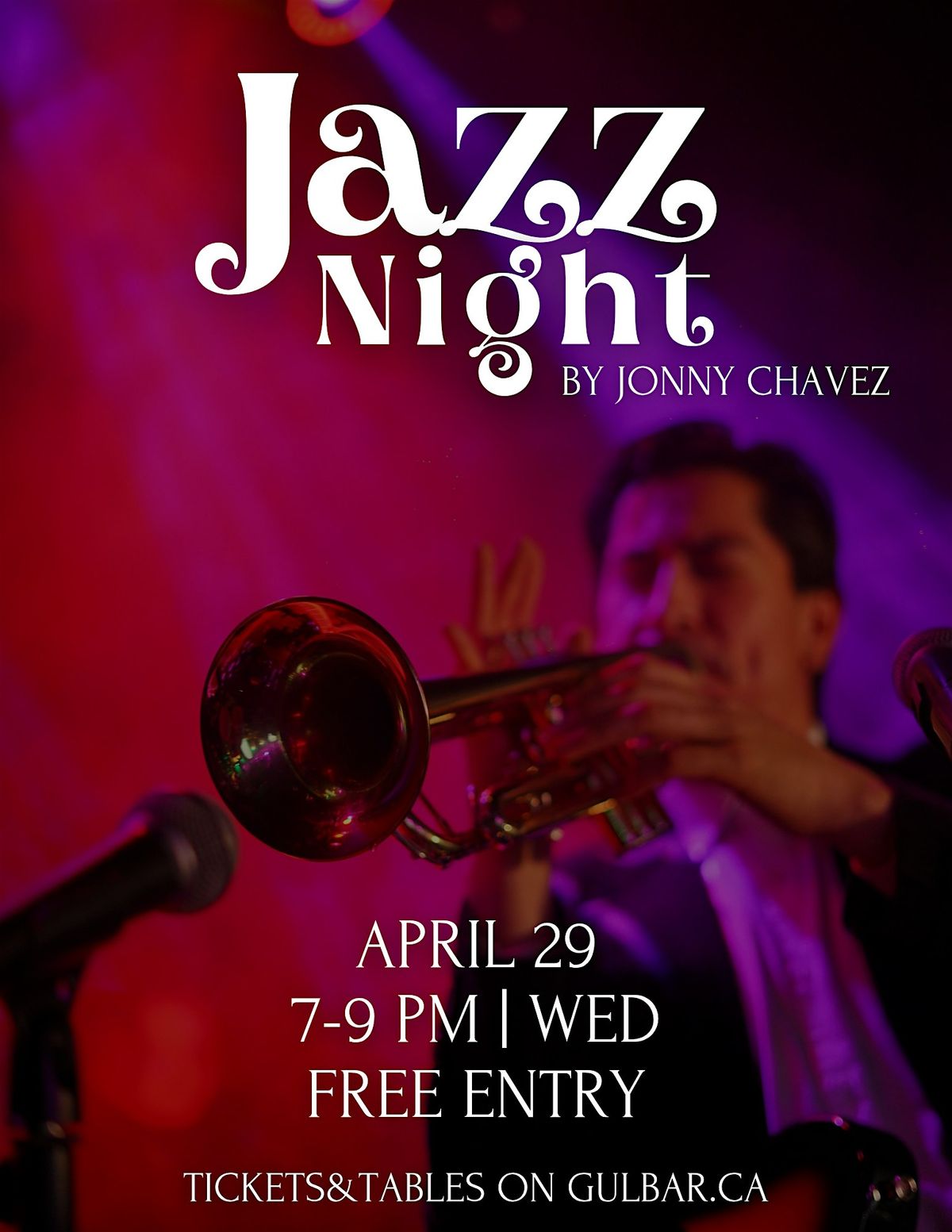 Join us for a relaxed and intimate evening of live music at Gulbar with Jonny Chavez in a special solo performance featuring guitar, vocals, and trumpet.