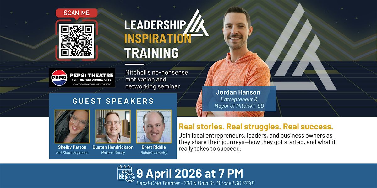 Jordan Hanson's L.I.T. (Leadership. Inspiration. Training.) Seminar is back - Featuring three standout South Dakota business leaders: Brett Riddle, Dusten Hendrickson, and Shelby Patton.