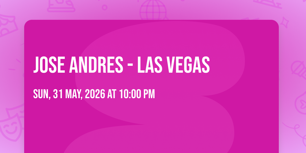 📍 Location: 36.1243, -115.168✨ Enter a world of endless possibilities at Jose Andres - Las Vegas, where every moment tells a story! 🏛️ The stunning Palazzo Theatre at The Venetian Resort in vibrant Las Vegas, NV transforms into a realm of wonder on May 31st, 2026 at 10:00 PM. 🌟 They have crafted an experience that goes beyond the ordinary, combining elements of surprise, delight, and pure entertainment. Every detail has been thoughtfully considered to ensure your journey with us is nothing short of extraordinary. 🎯 Join fellow adventure seekers and memory makers in this celebration of imagination and innovation. 🎊 Reserve your spot today and be part of something truly special!