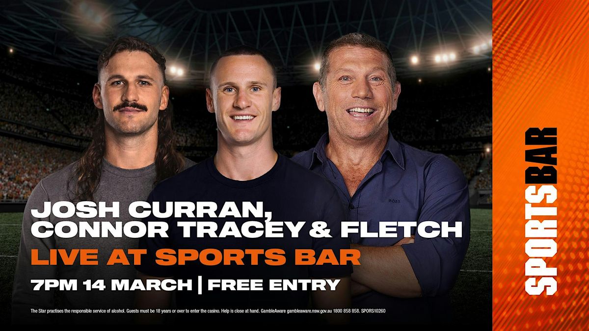 Join us for the footy and laughs on Saturday 14 March as Josh Curran, Connor Tracey & Fletch appear live at Sports Bar!About this Event
