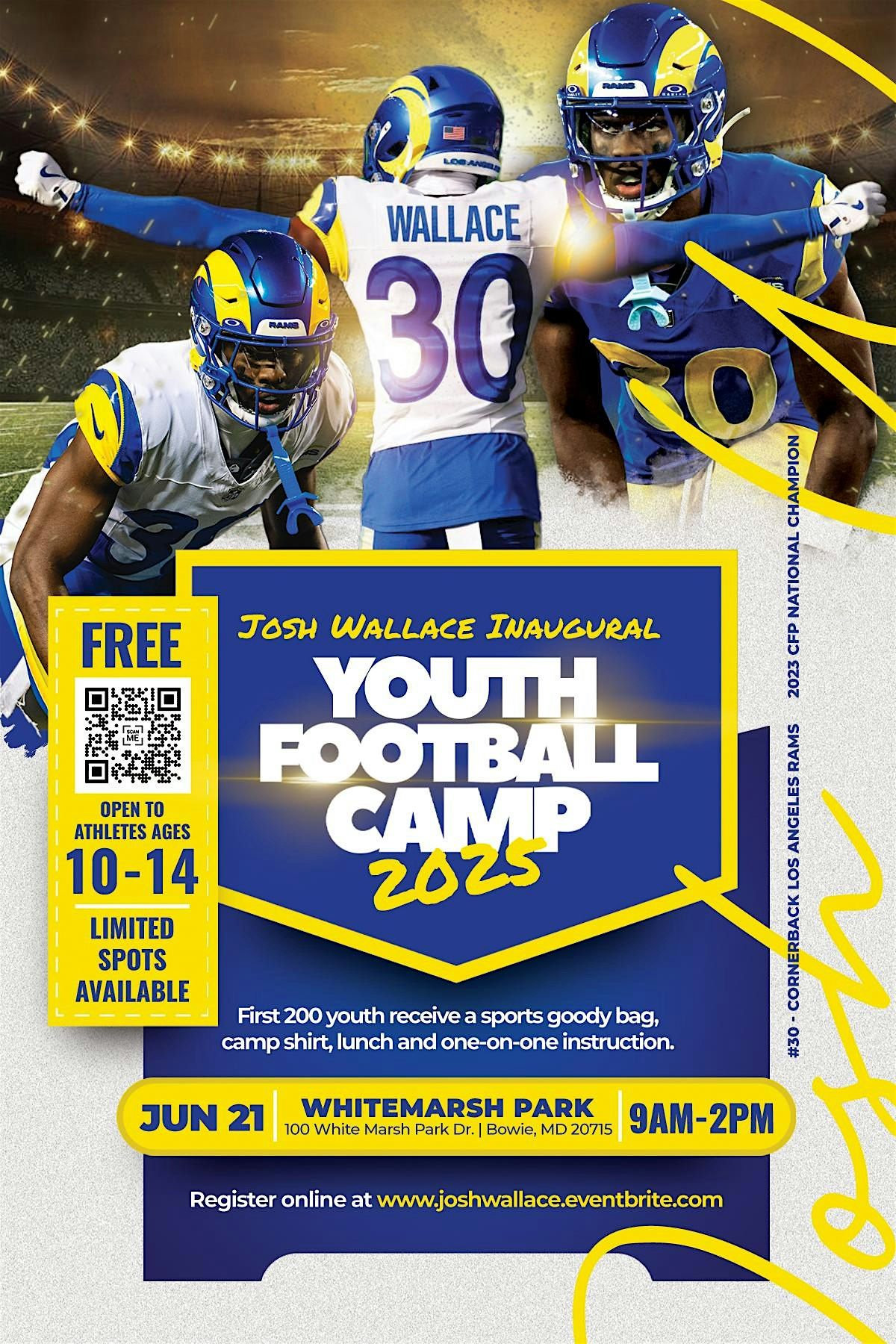 LA Rams cornerback Josh Wallace returns home to Bowie, MD to host his second annual youth football camp.About this Event