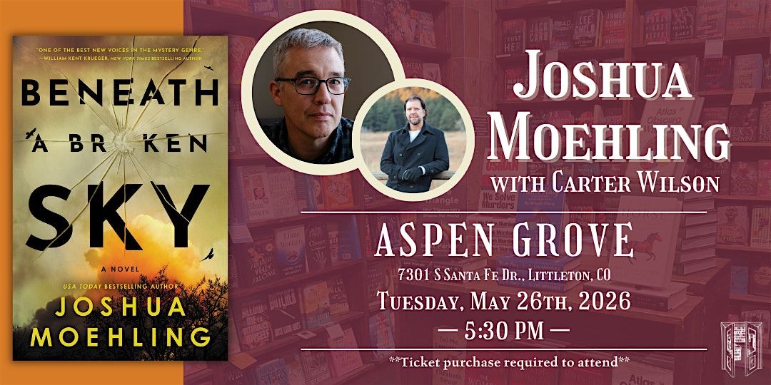 Joshua Moehling is joining us with local author Carter Wilson on Tuesday, May 26th at 5:30 PM at our Aspen Grove location for a great conversation about Joshua's new detective thriller: Beneath a Broken Sky.