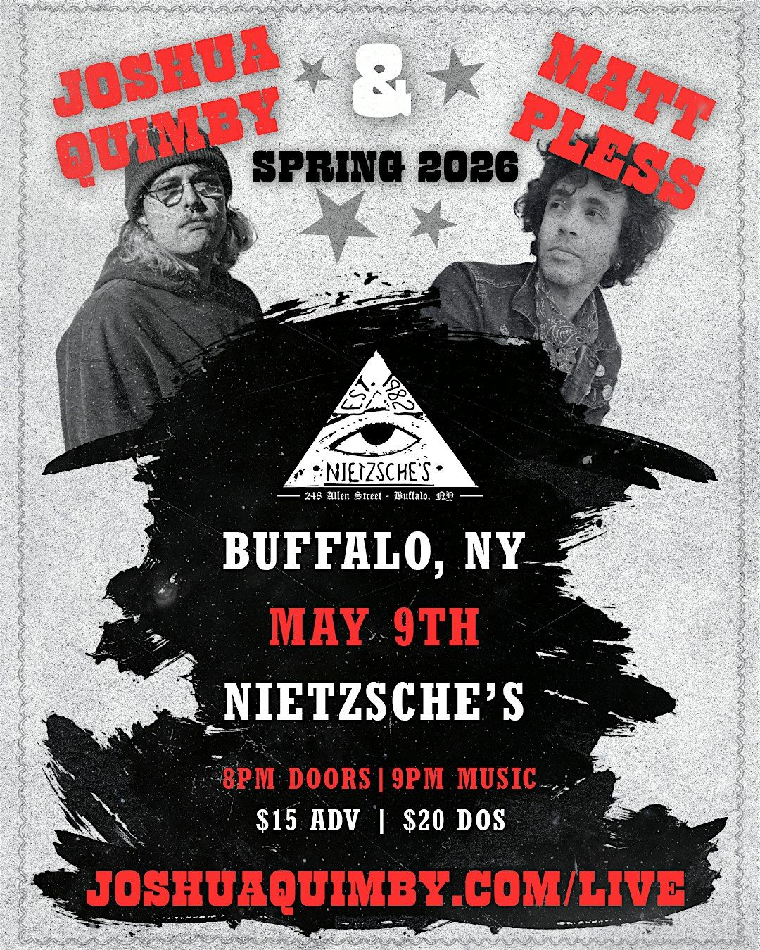 Joshua Quimby & Matt Pless take the Nietzsche's stage on Saturday, May 9th!