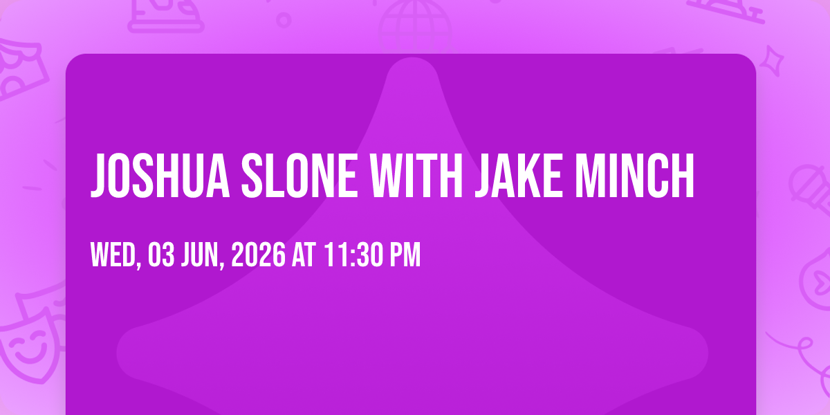 📍 Location: 30.2399, -97.7281✨ Experience the magic of Joshua Slone with Jake Minch, where moments become memories that last a lifetime! 🏛️ The iconic Emo's Austin in Austin, TX sets the perfect stage for an unforgettable celebration on June 3rd, 2026 at 11:30 PM. 🌟 It's been a curated experience that brings together the best of entertainment and innovation, creating an atmosphere of wonder and excitement. From the moment you arrive, you'll be immersed in a world where the ordinary transforms into the extraordinary. 🎊 Book early to secure your place in what promises to be an event that will be talked about for years to come!