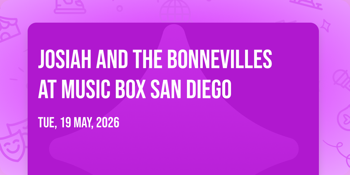 ✨ Experience the magic of Josiah and the Bonnevilles at Music Box San Diego, where moments become memories that last a lifetime! 🏛️ The iconic Music Box San Diego in San Diego, CA sets the perfect stage for an unforgettable celebration on May 19th, 2026 at 08:00 PM. 🌟 It's been a curated experience that brings together the best of entertainment and innovation, creating an atmosphere of wonder and excitement. From the moment you arrive, you'll be immersed in a world where the ordinary transforms into the extraordinary. 🎊 Book early to secure your place in what promises to be an event that will be talked about for years to come!