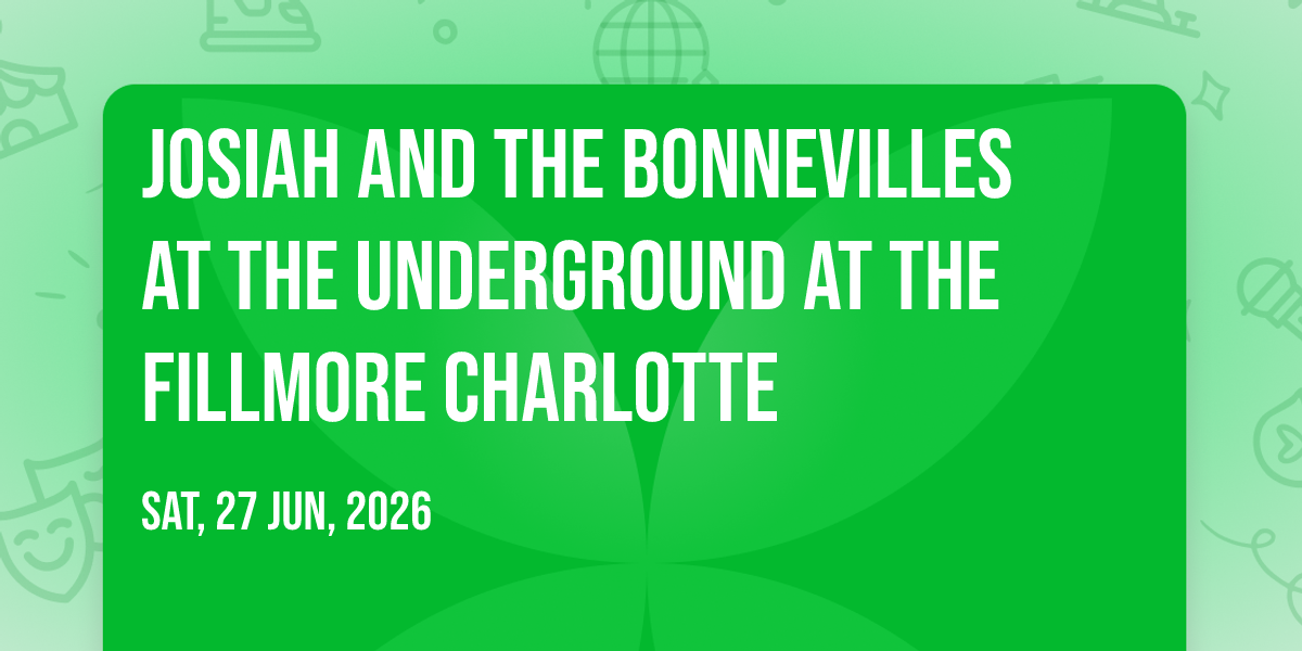 🎉 Welcome to Josiah and the Bonnevilles at The Underground at The Fillmore Charlotte, where dreams come alive and possibilities are endless! 🏛️ Join us at The Underground at The Fillmore Charlotte in the heart of Charlotte, NC for an event that defies expectations. 📅 On June 27th, 2026 at 08:00 PM, be part of something truly extraordinary as we bring together innovation, entertainment, and pure magic. ✨ Every aspect has been carefully designed to ensure an unforgettable experience for all our guests. Whether you're seeking adventure, inspiration, or simply a break from the ordinary, this event promises to deliver beyond your wildest dreams. 🎊 Prepare for a journey into the extraordinary!