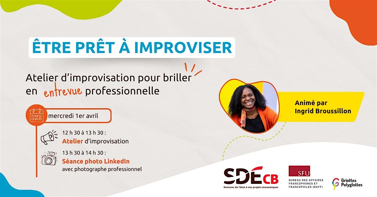 De 12h30 à 13h30 au Salon étudiant du BAFF: Atelier – Être prêt à improviser animé par Ingrid Broussillon
