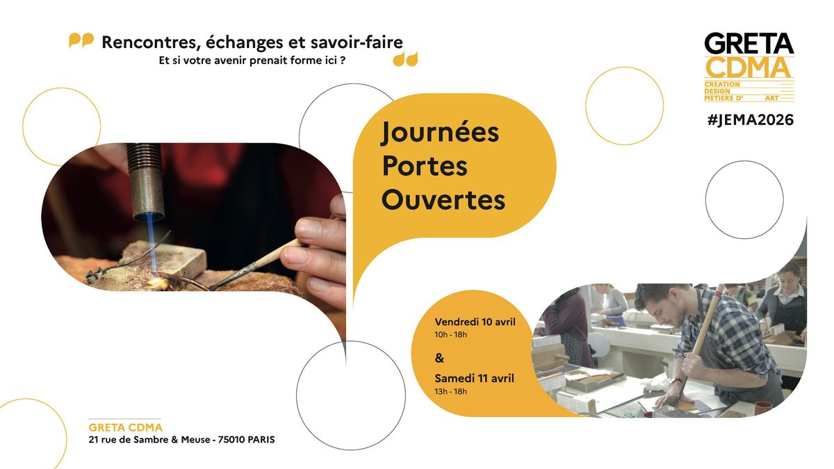 Découvrez nos formations métiers d’art & design lors de nos Journées Portes Ouvertes.Rencontrez nos équipes et construisez votre projet pro.