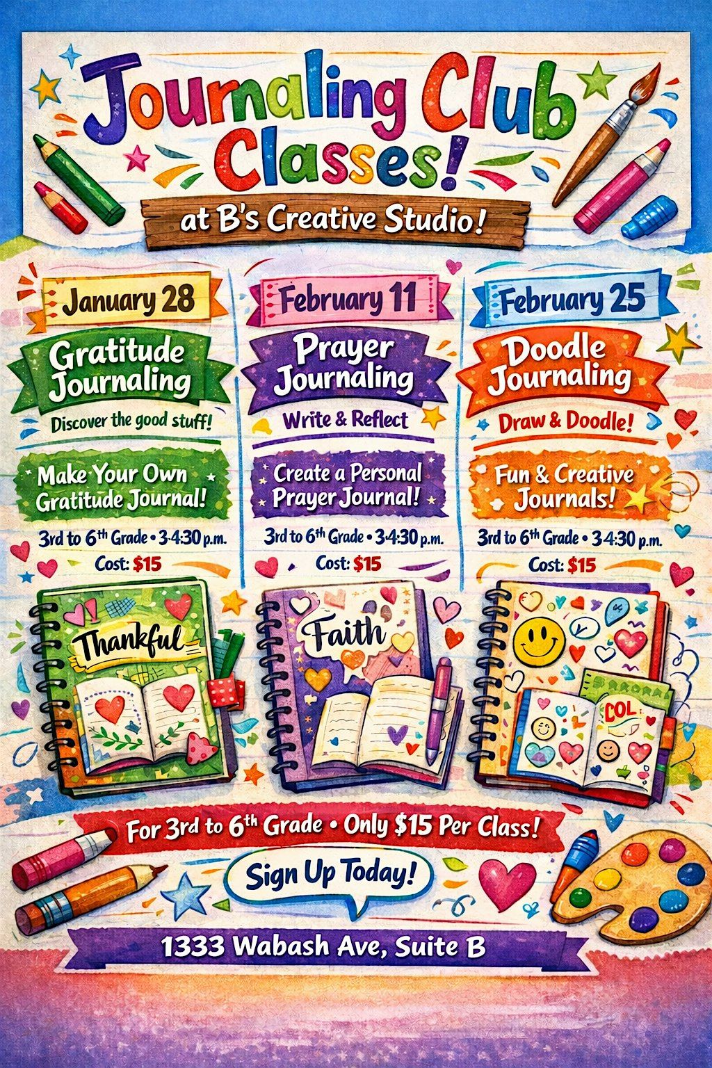 girls will explore a unique journaling style each week, often with art activities. Through daily prompts, they’ll discover new ways to express themselves—choosing either words or drawings—while learning how journaling can calm their souls, build emotional resilience, and deepen their walk with the Lord.