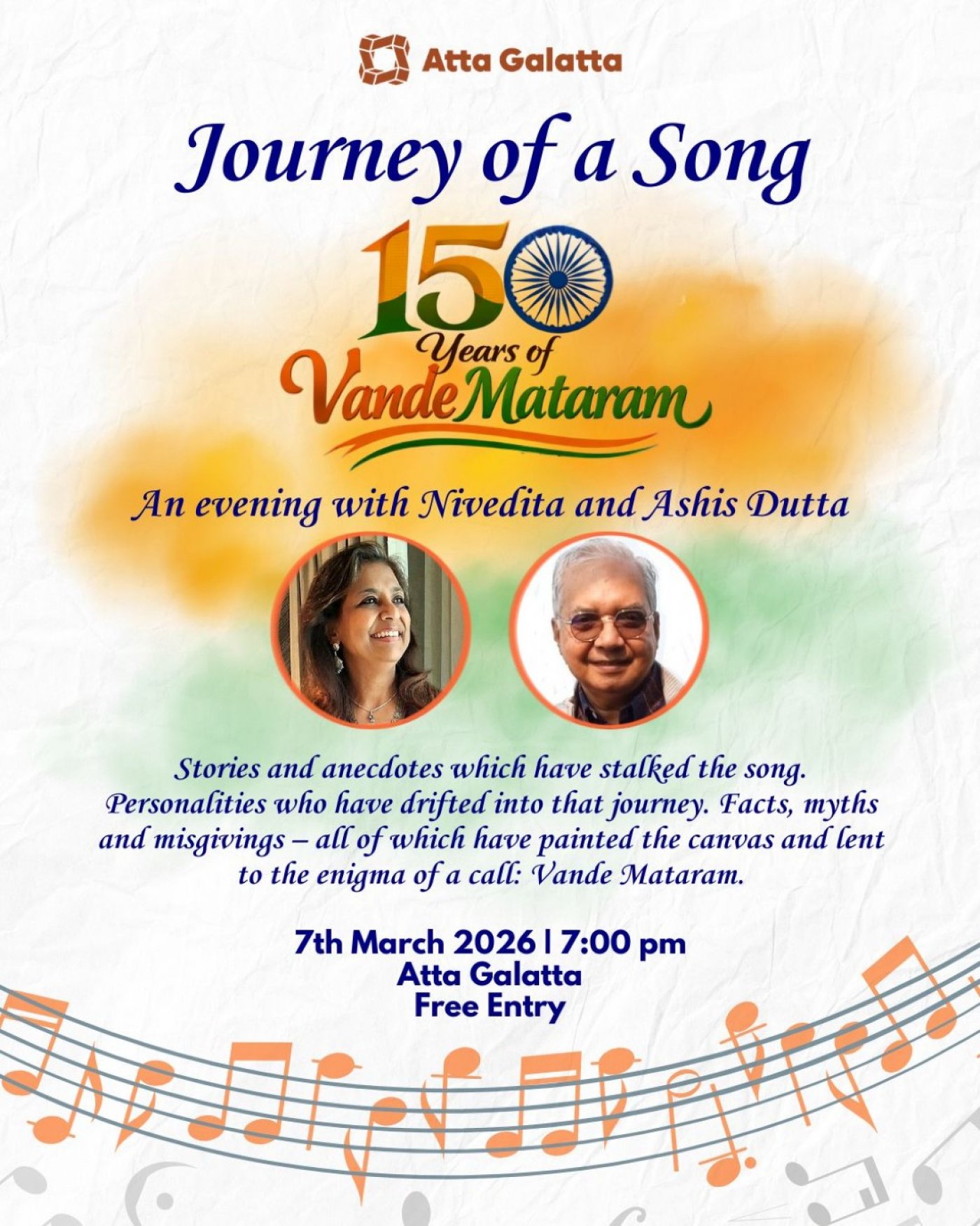 1-hour event of Storytelling and Songs. Of the 150 years of journey of Vande Mataram.