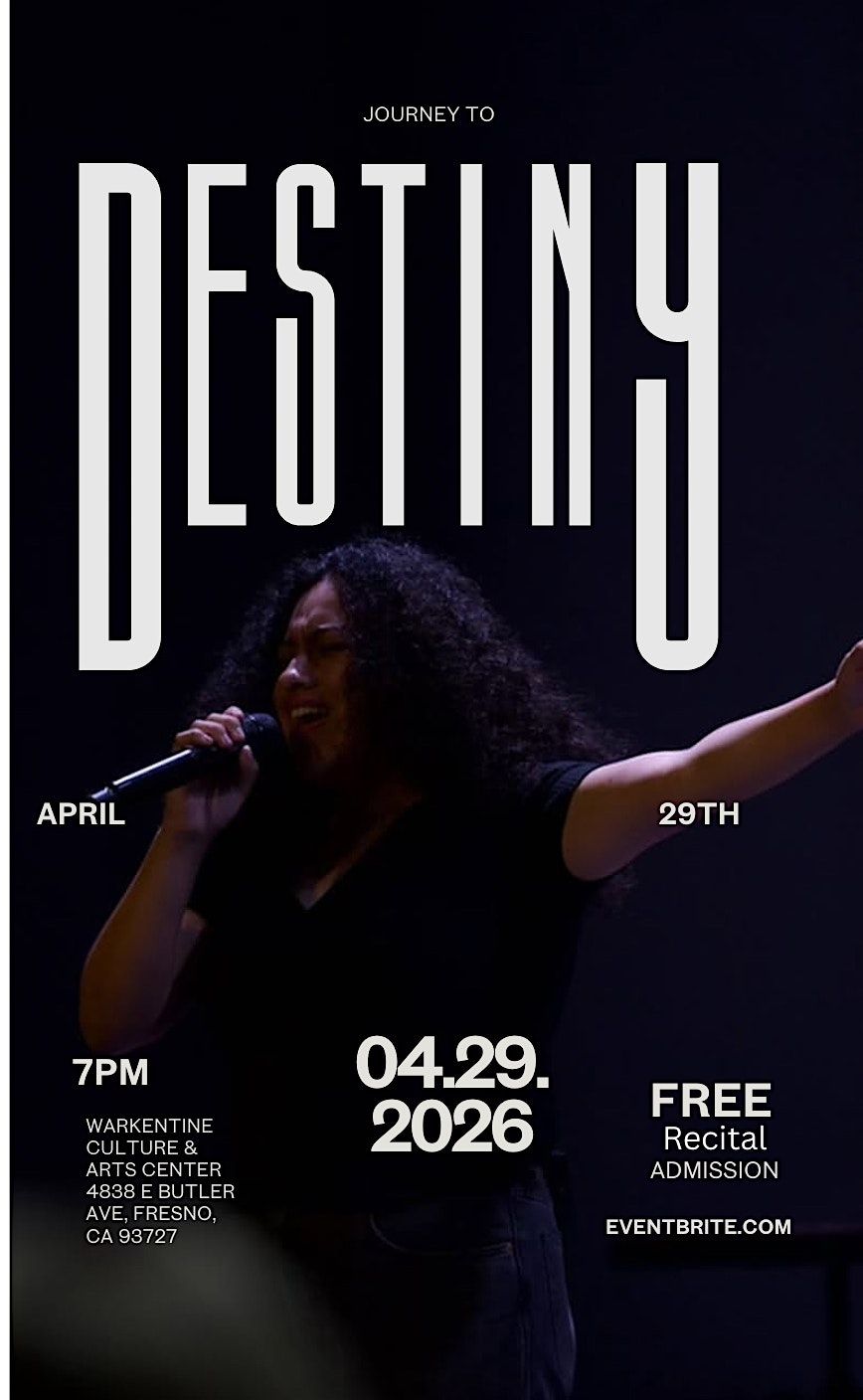 Come join us for an unforgettable in-person experience with the Journey to DESTINY Senior Recital! It's a special day where talented seniors showcase their hard work and passion. Whether you're a music lover or just looking for a fun time, this recital is the perfect way to enjoy live performances and support amazing young artists. Donโt miss out on the vibes and cheers โ see you there!
