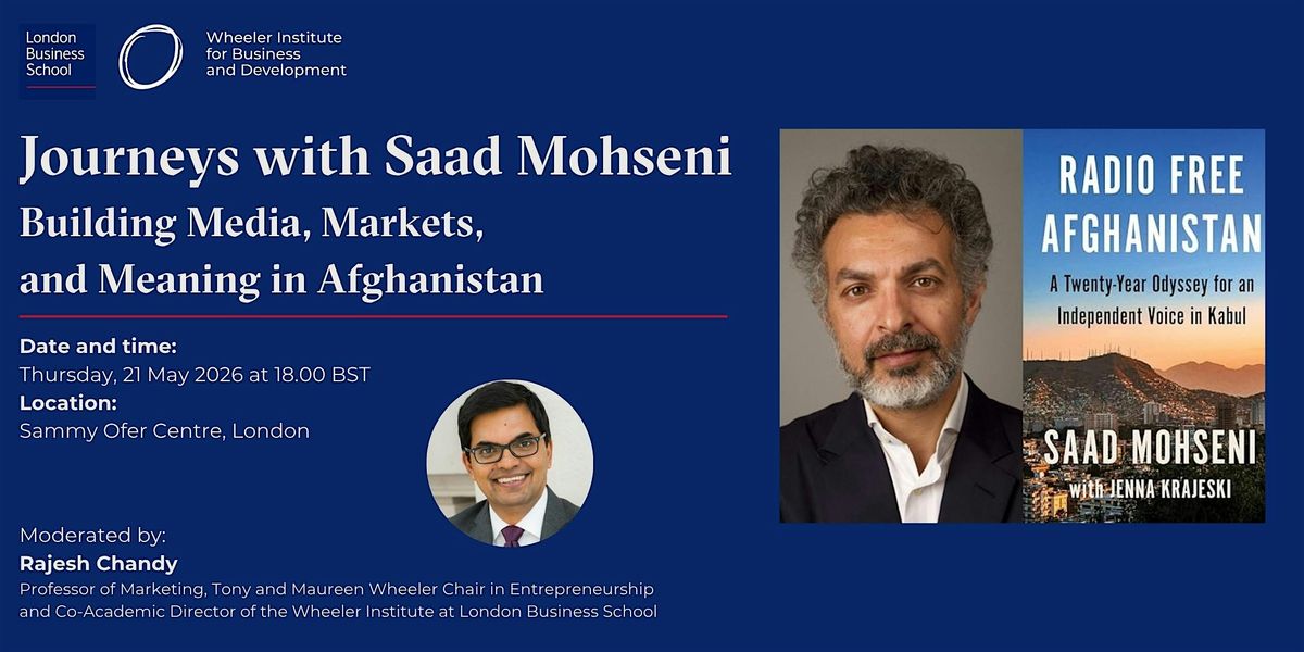 As part of the Wheeler Institute’s Journeys series, we are delighted to welcome Saad Mohseni, founder and CEO of the Moby Group, for a conversation on entrepreneurship, leadership, and resilience in one of the world’s most complex environments.