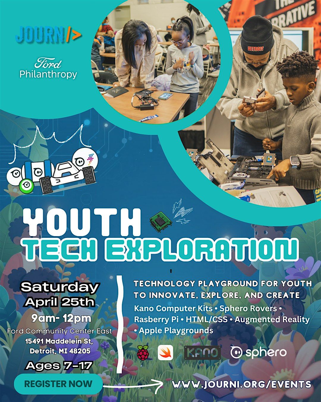 Join us for an exciting morning of hands-on tech exploration for youth and adults, sponsored by JOURNi and Ford Philanthropy.