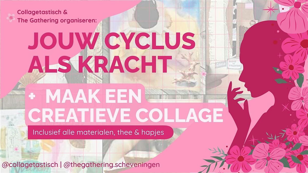 Maar dat niet alleen. Je gaat ook creatief aan de slag met collage materiaal en maakt iets om mee naar huis te nemen en je te herinneren aan jouw unieke vrouwelijke ritme. Geen creatieve vaardigheden vereist, iedereen met een menstruatiecyclus kan meedoen.