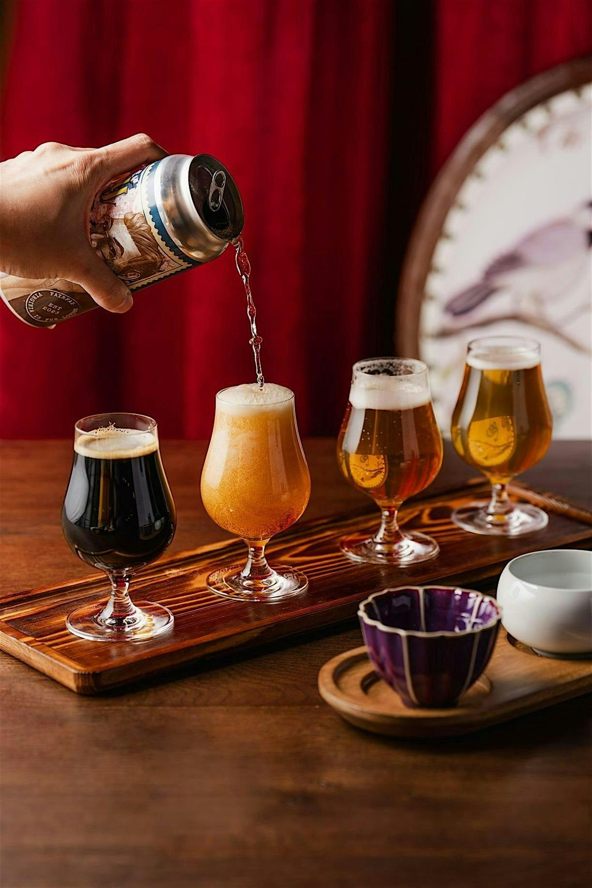 Guests will be guided through a curated flight of four JOY BOY selections from Dynasty Brewing Company, each artfully paired with a composed Japanese bite. Every course is designed to highlight nuance in aroma, texture, and finish—capturing the delicacy and transience of spring.
