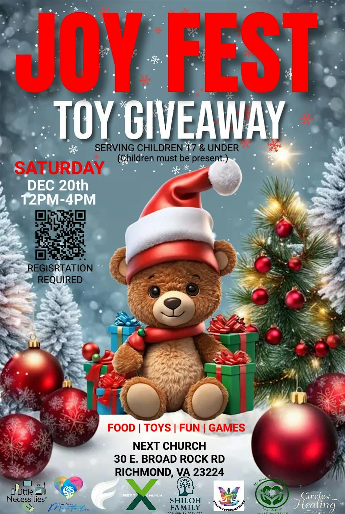Join us for a festive community celebration! Free toys, fun activities for all ages, food, music, and cheerful surprises. ✨