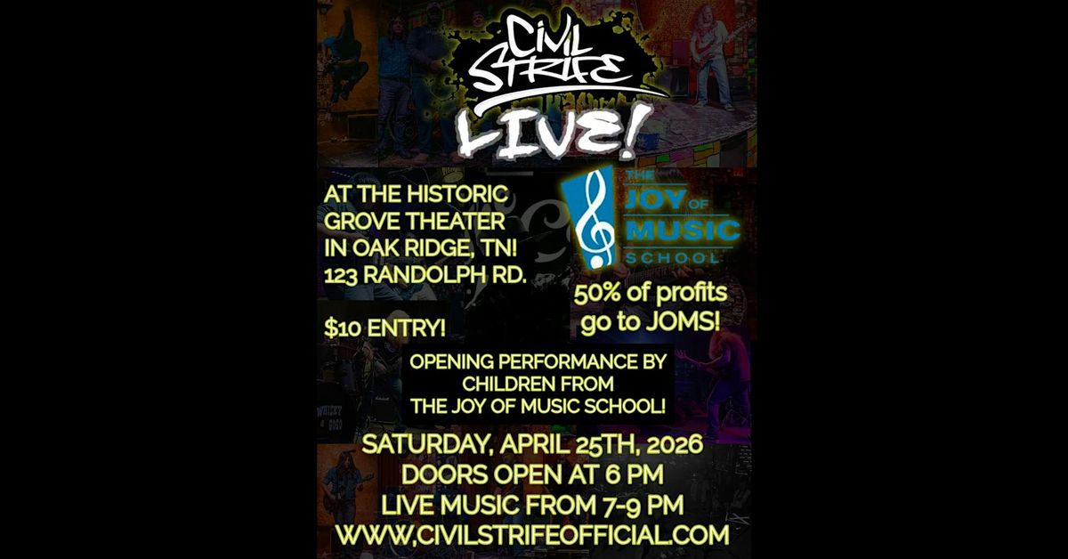 Come see Civil Strife live at the Grove in Oak Ridge with an opening performance from students at the Joy of Music School!