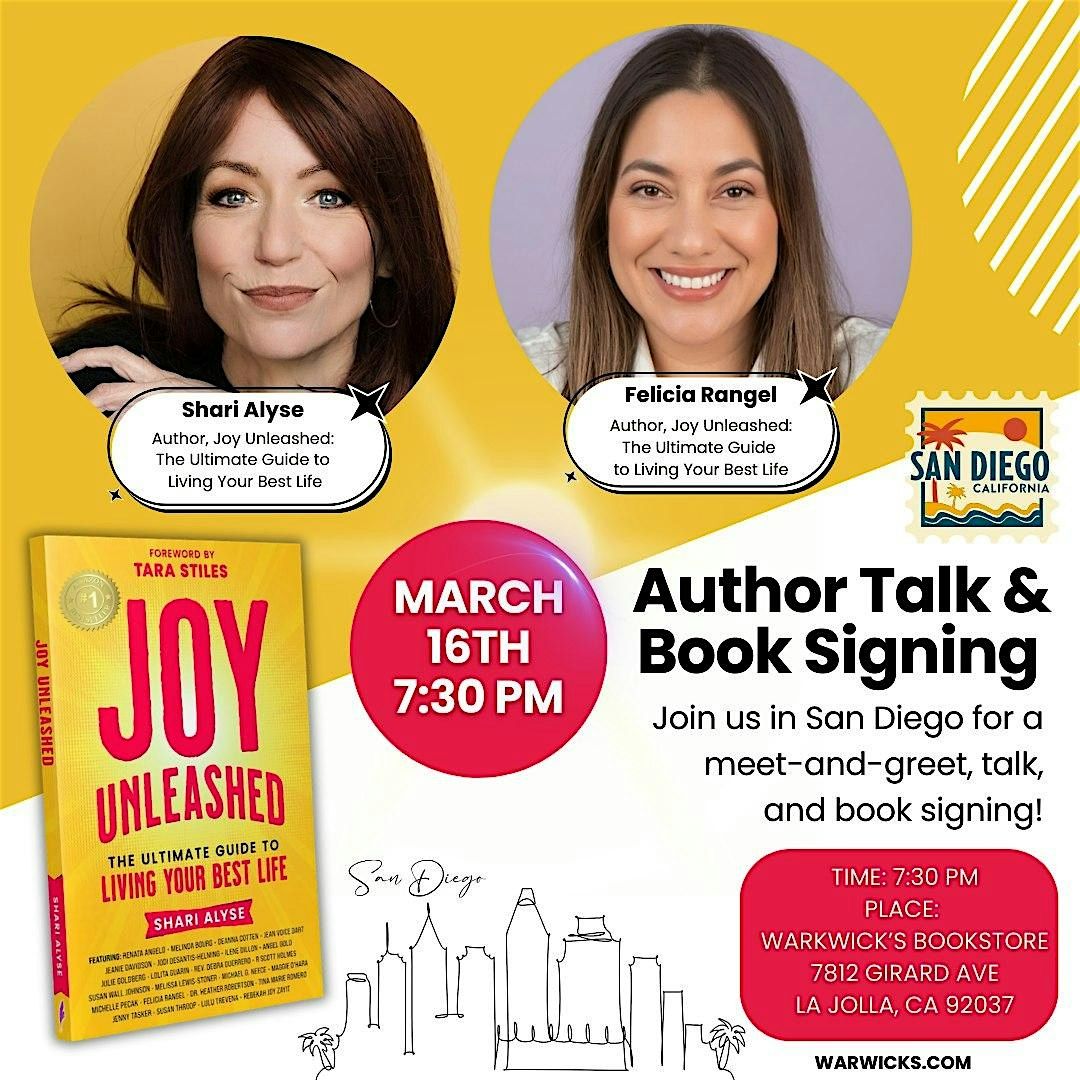 Join Authors Shari Alyse and Felicia Rangel at Warwick's for a meet-and-greet, talk and booksigning of "Joy Unleashed".