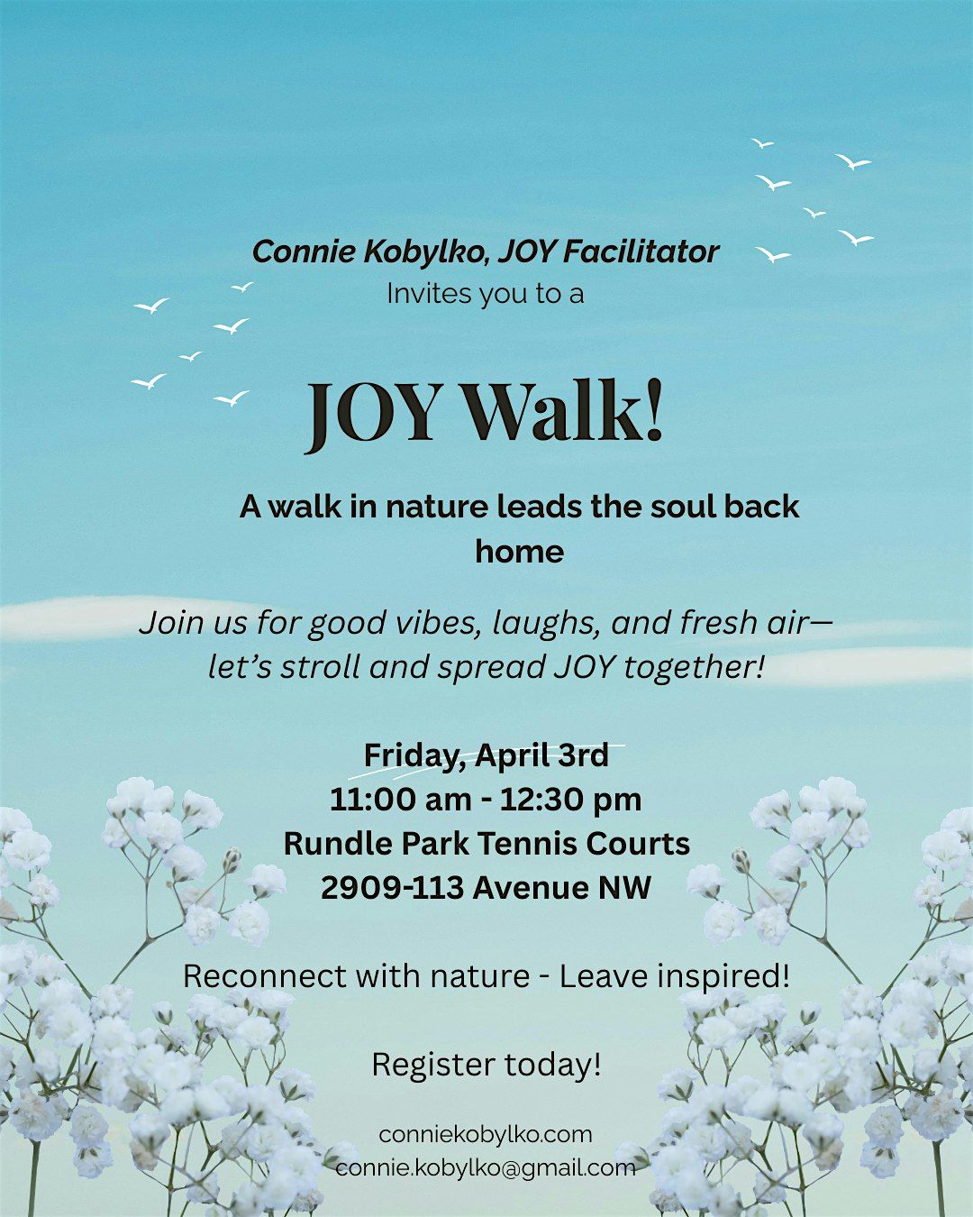 Join us for a fun and energizing in-person JOY Walk led by Connie, our amazing JOY Facilitator! It’s a perfect chance to get moving, connect with others, and soak in some good vibes together. Whether you’re aiming to boost your mood or just enjoy a friendly stroll, this walk is for you. Don’t miss out on the joy—come walk with us and feel the positive energy!