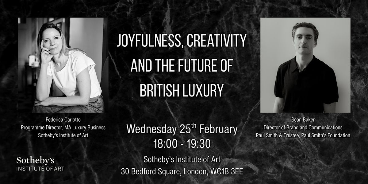 Join Sean Baker (Director of Brand and Communications, Paul Smith & Trustee, Paul Smith’s Foundation) and Federica Carlotto (Programme Director, MA Luxury Business, Sotheby’s Institute of Art) for an inspiring conversation on the brand’s journey, its latest evolutions, and what lies ahead for Paul Smith—and British luxury—in today’s fast-changing