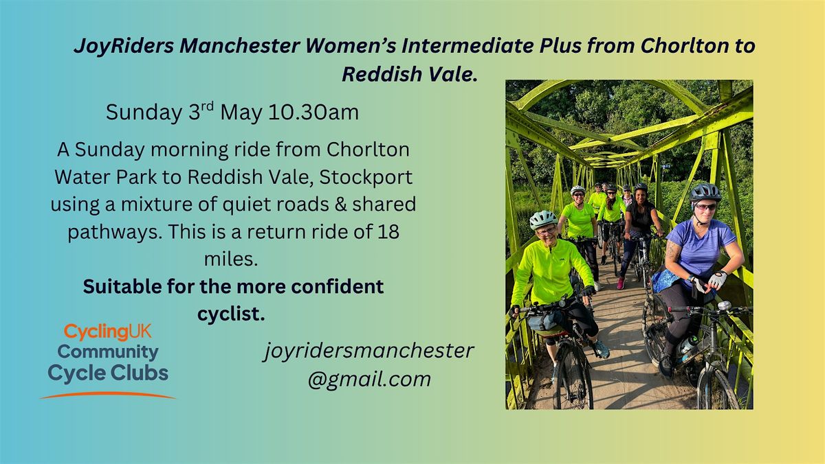 Join us for a Sunday social cycle from Chorlton Water Park What3words to Reddish Vale in Stockport. We'll follow the Trans Pennine Trail all the way to our destination where there is a coffee van. Alternatively if the weather isn't that great we can cycle up the road to Reddish Vale Farm where they have a cafe. We'll then return via Fallowfield Loop. Our pit stop is just over the half way mark.