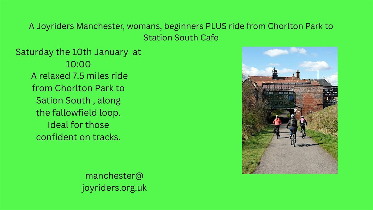 JoyRiders Manchester women's Beginners PLUS ride from Chorlton Park, Carpark off Nell Lane to Station South Cycle Cafe, Levenshulme