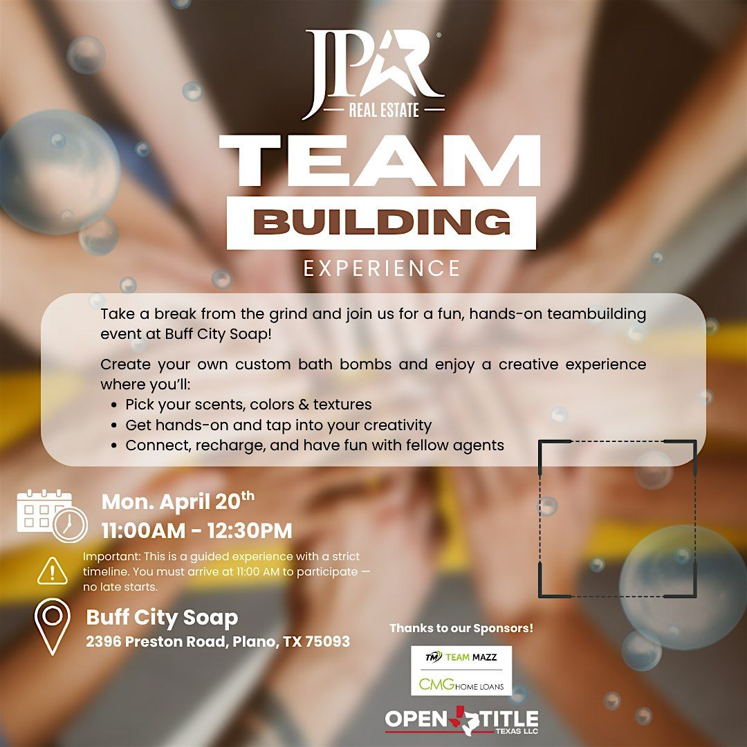 Join us for a fun in-person event where the JPAR Real Estate crew teams up with Buff City Soap! Get ready to unwind, create, and bond by making your very own custom soap. It’s a perfect way to connect with your teammates outside the office while enjoying some hands-on creativity. Don’t miss out on this unique team building experience that’s all about teamwork and good vibes!