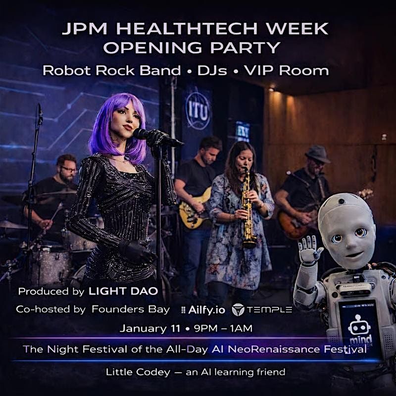 A rare night where music, movement, and human–AI creativity converge. Experience a robot-led rock band performance by Desdemona and a high-energy dance floor at Temple Nightclub, one of San Francisco’s most legendary cultural venues.