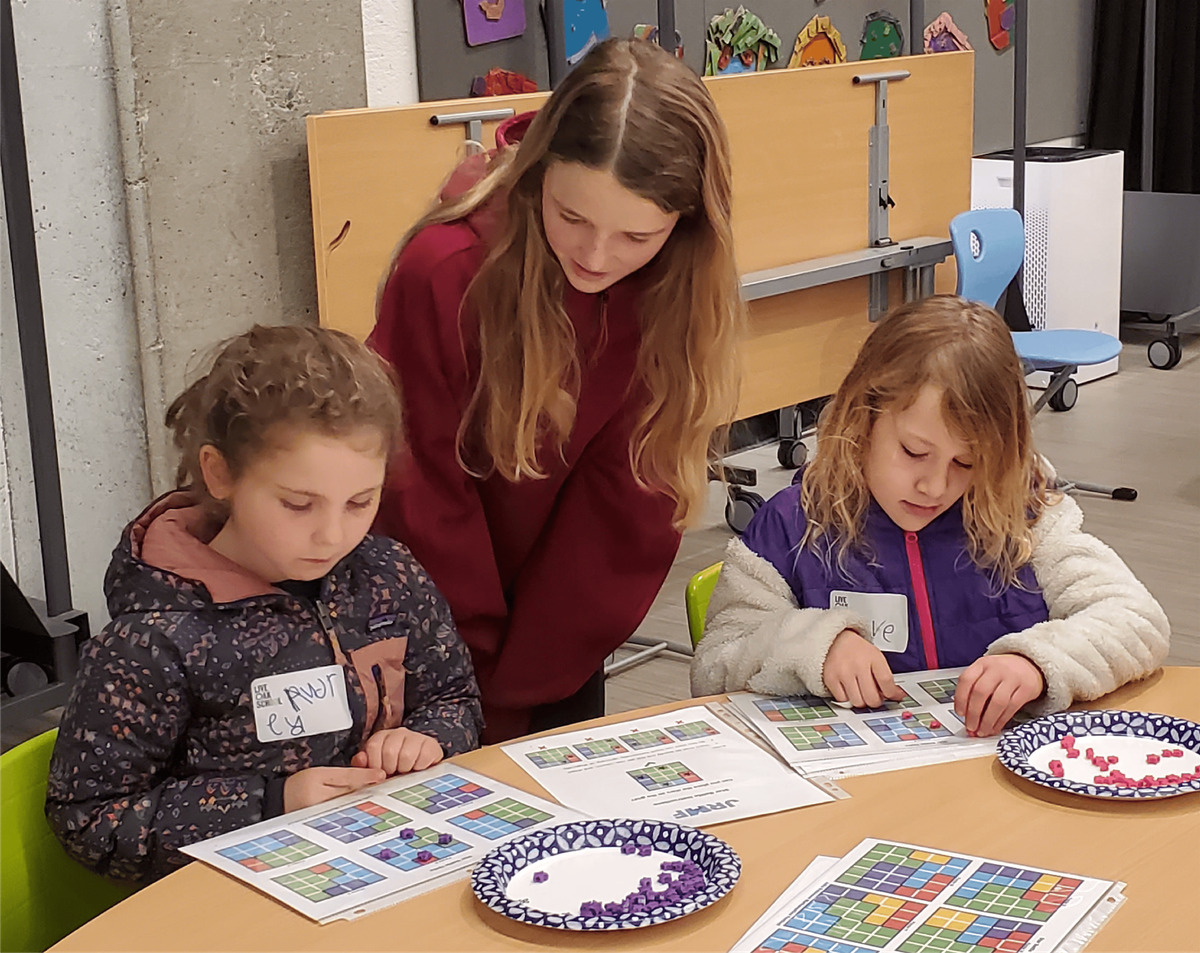 Math Festival activities are designed for children and teens and their families. The JRMF Math Festival at the San Leandro Public Library is free, open to all, and an event where you can drop in and drop out whenever you’d like.