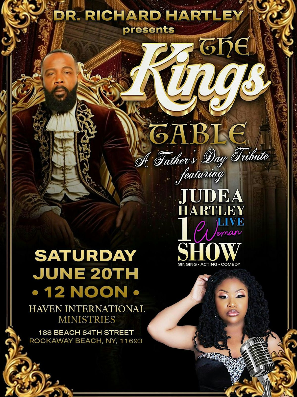 Get ready for an unforgettable evening with Judea's One Woman Show, a heartfelt Father's Day Tribute like no other. Join us in person as Judea takes the stage solo, sharing stories, laughs, and love dedicated to all the amazing dads out there. It's a night full of warmth, inspiration, and fun – perfect for celebrating Father’s Day in a special way. Don’t miss this unique live experience!