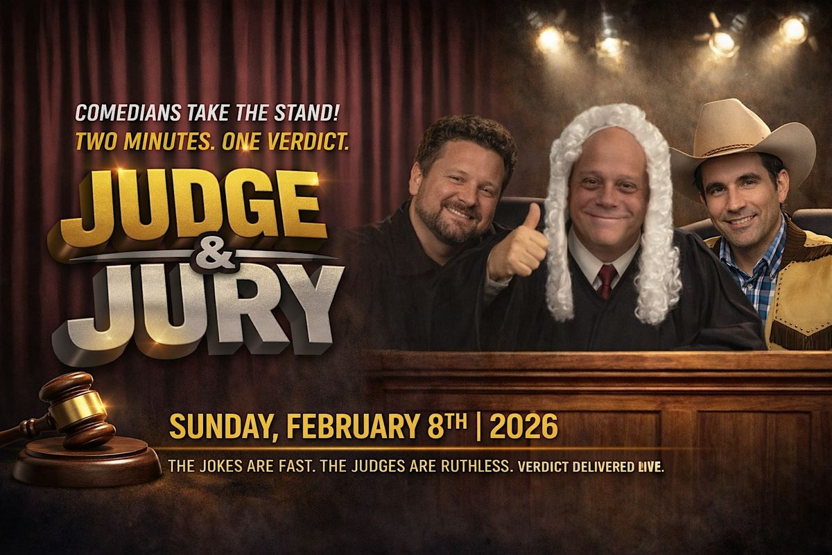 Stand-up meets the courtroom in this fast-paced comedy showdown. Comedians have their names pulled at random, take the stand, and get two minutes to plead their case by making the jury laugh. Facing a panel of their comedy peers, the jokes come quick, the energy stays high, and the whole thing is all in good fun.