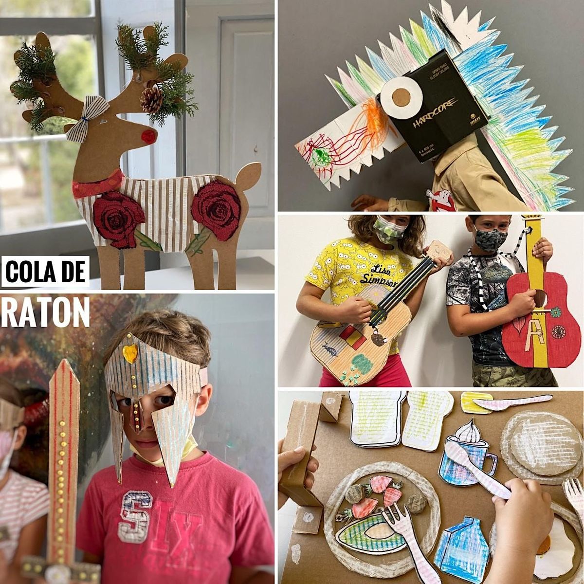 Los materiales que empleamos son en su mayoría materiales que nos proporciona la naturaleza, materiales reciclados, biodegradables tales como el cartón, elementos ideales para fomentar la creatividad en estas edades.