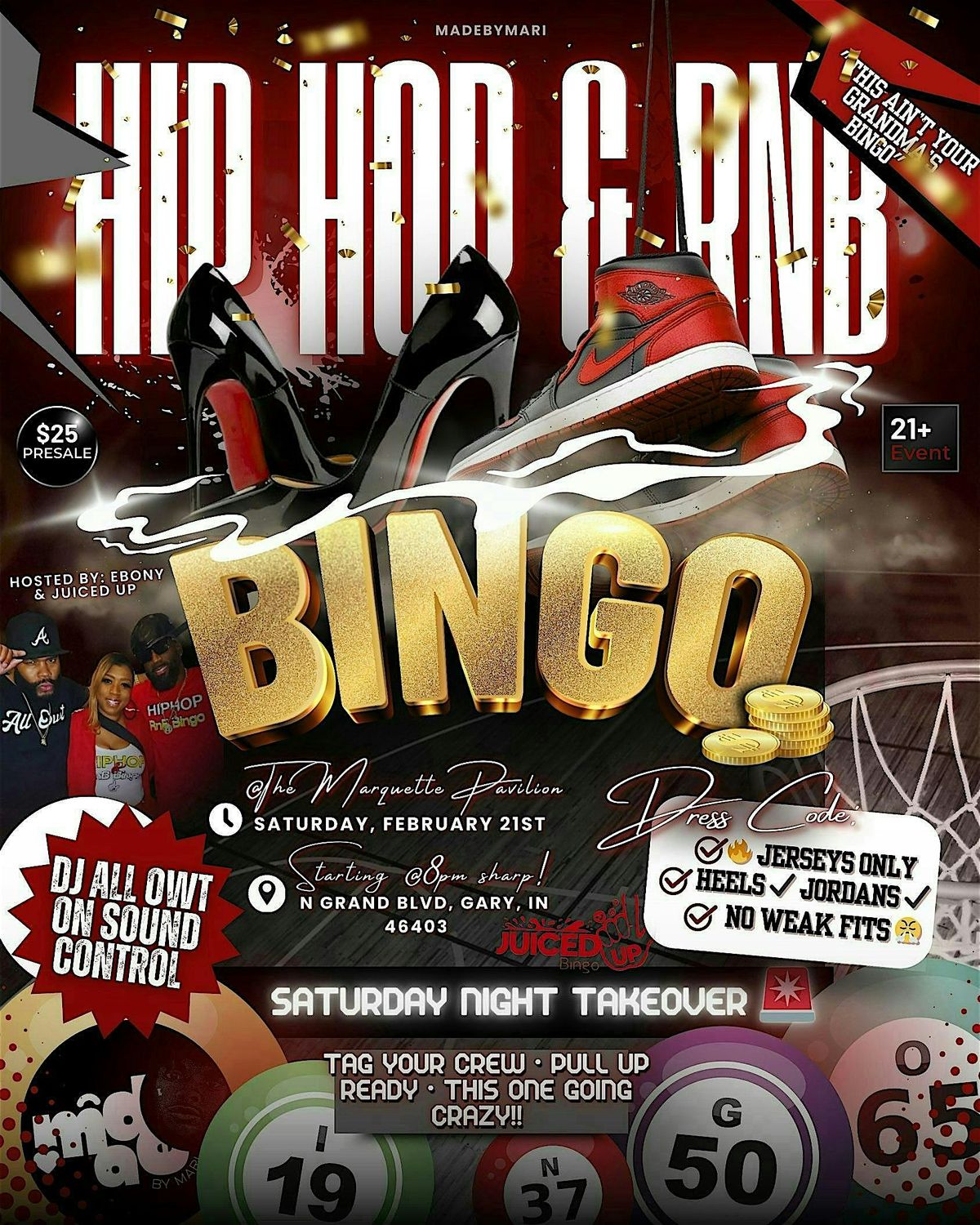 Juiced Up Hip Hop & RnB Bingo is a high-energy party experience where bingo meets Hip Hop & RnB vibes.