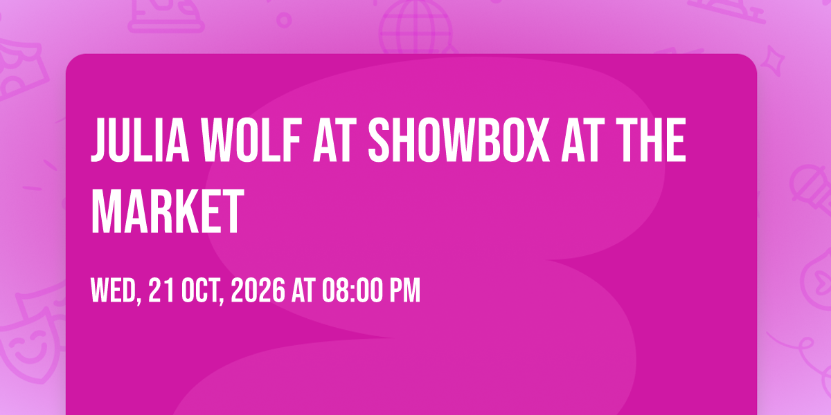 🎉 Welcome to Julia Wolf at Showbox at the Market, where the impossible becomes possible and dreams take flight! 🏛️ Join us at Showbox at the Market in the heart of Seattle, WA for an event that will redefine your expectations. 📅 On October 21st, 2026 at 08:00 PM, witness the transformation of space and time into something truly magical. ✨ It's a curated experience combining the best of innovation, entertainment, and community spirit, creating moments that will be remembered for years to come. Whether you're a first-time visitor or a seasoned enthusiast, prepare to be amazed. 🎊 Book now to ensure your place in this unforgettable experience!