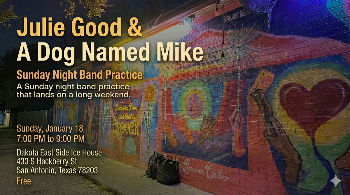 Singer-songwriter Julie Good and her band, A Dog Named Mike, bring Sunday night band practice to The Dakota East Side Ice House.A Sunday night band practice that lands on a long weekend.
