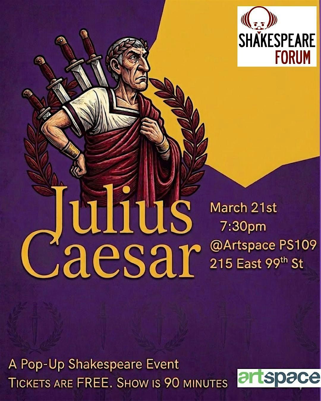 Join us for a fun and fresh take on Shakespeare’s classic Julius Caesar! This pop-up event at El Barrio's Artspace PS109 is perfect for anyone who loves drama, history, or just a good time. Come hang out on March 21, 2026 at 7:30 PM (Eastern Time) and experience the Bard like never before!