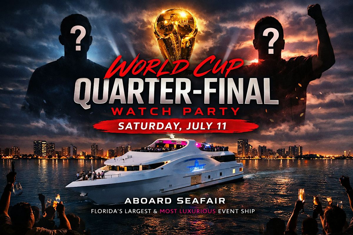 Step aboard Seafair for an unforgettable nighttime World Cup Quarter-final Watch Party aboard Florida’s largest and most luxurious event ship. Enjoy the excitement alongside a skyline cruise, gourmet food, open bar, and festive entertainment.