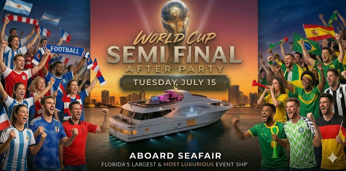 Step aboard Seafair for an unforgettable nighttime World Cup Quarter-final Watch Party aboard Florida’s largest and most luxurious event ship. Enjoy the excitement alongside a skyline cruise, gourmet food, open bar, festive entertainment and replays of the day's game available onboard.