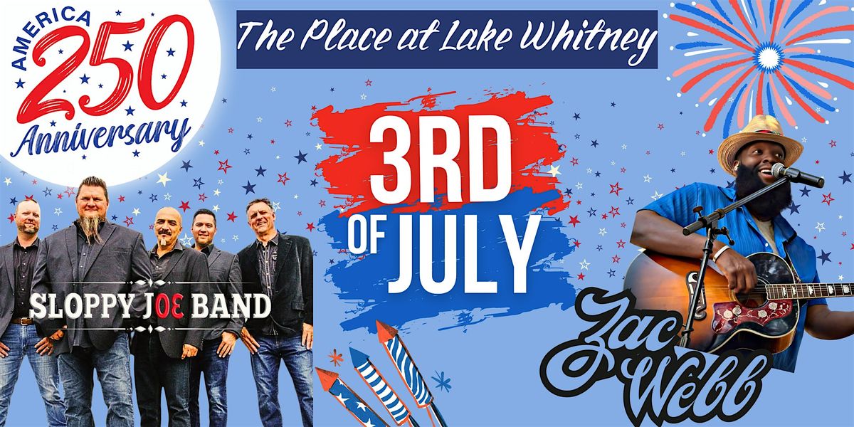 6th Annual celebration at The Place at Lake Whitney featuring Zac Webb &Sloppy Joe Band. Class A professional firework show. Food & Bar.