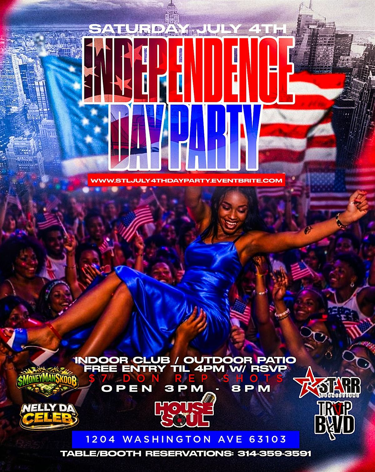 COME DRESSED IN YOUR JULY 4TH COLORS AND BE READY TO PARTY. EAT GOOD & ENJOY THE DAY PARTY VIBES WITH YOUR FRIENDS OR COME MEET SOME NEW PEOPLE ON OUR PATIO!!