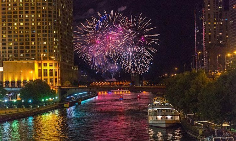 Wednesday night for a Fireworks Booze Cruise and enjoy sunset views along the Chicago RiverAbout this Event
