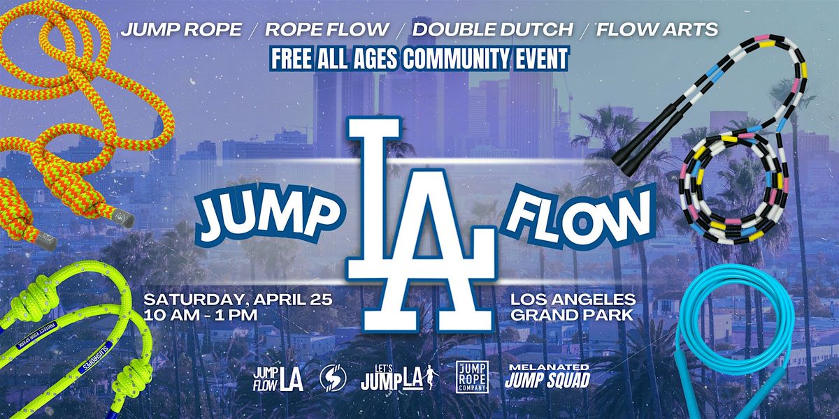 Get ready to jump and flow into an epic day at a FREE all ages community event hosted by Jump Flow LA, SlushRopes, Let's Jump LA, and Melanated Jump Squad! Located at the iconic Grand Park in the heart of Downtown LA, this outdoor event features a nearby Starbucks, public restrooms, tables, and a large public water fountain splashpad for the kids!