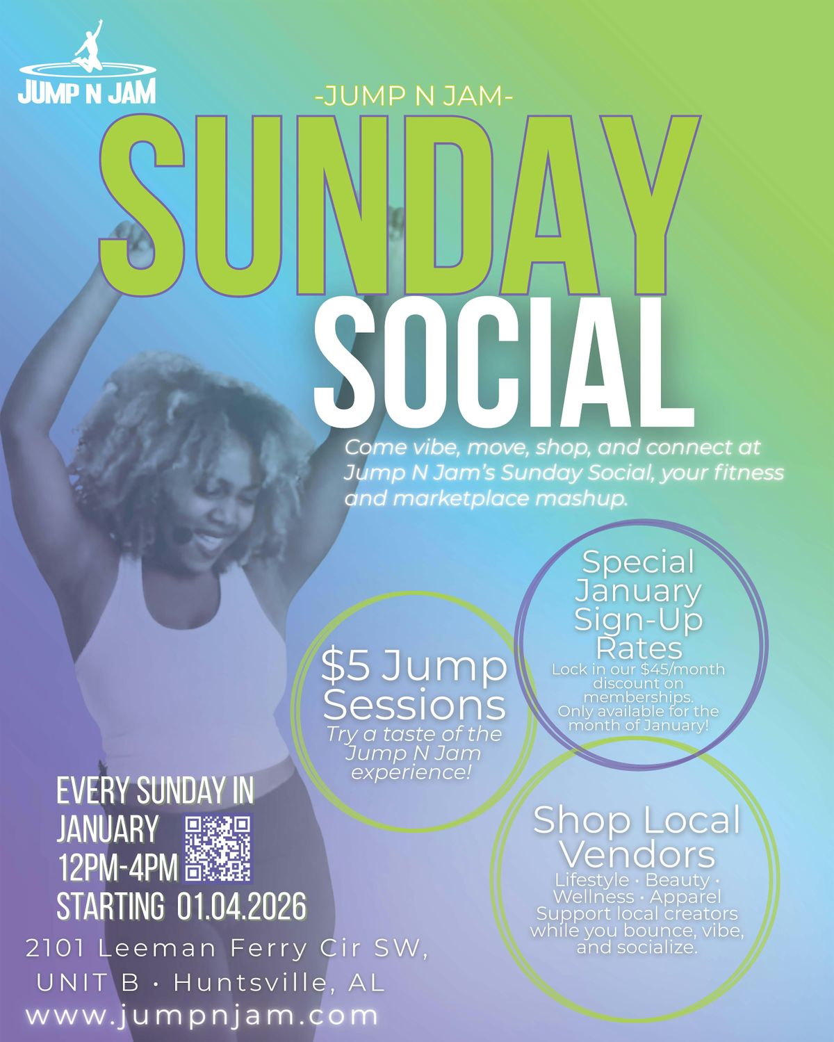 Join us for Jump N Jam’s Sunday Social — a January-only community event focused on movement, connection, and good energy.