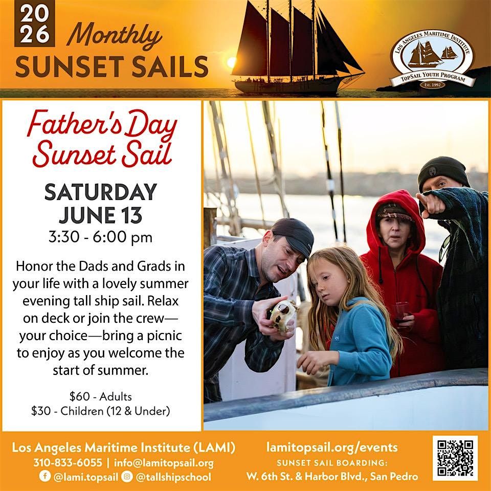 Join us on Father's Day to sail the San Pedro Bay and watch the sunset from the deck of a tall ship. You can sit back and relax or become part of the crew – your choice - and don’t forget a picnic! (No glass bottles please.)