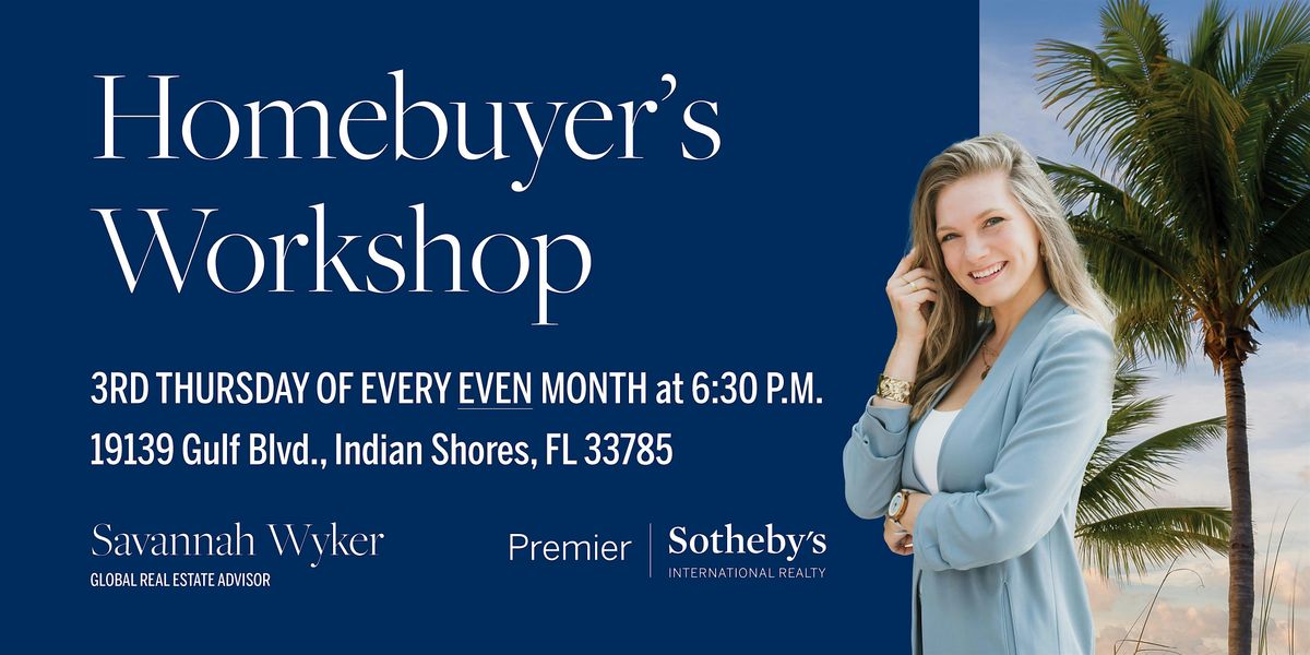 Light snacks will be provided. The class is held at the Premier | Sotheby's office at 19139 Gulf Blvd, Indian Shores, FL. It's the white building next to Indian Shores Coffee and Mahuffer's bar.