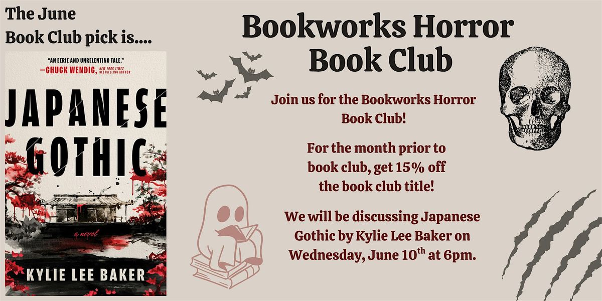 Fan of all things horror and chatting about your favorite books with other readers? Join the Bookworks Horror Book Club! In June, we will be discussing Japanese Gothic by Kylie Lee Baker.
