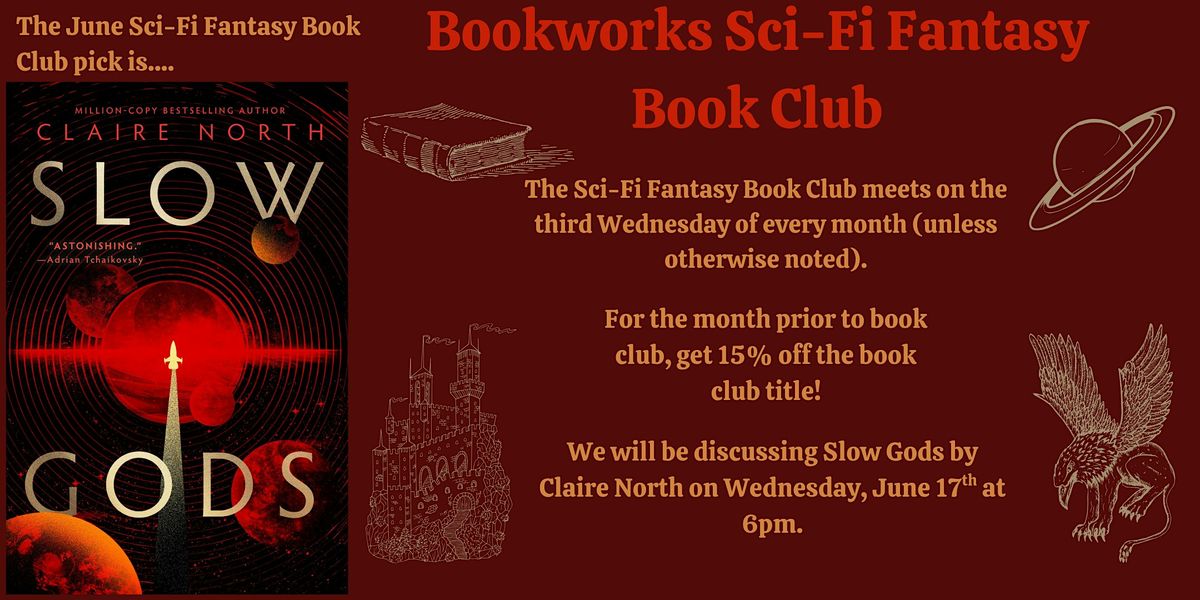 Love Sci-Fi Fantasy and chatting about your favorite books with other readers? Join the Bookworks Sci-Fi Fantasy Book Club! In June, we will be discussing Slow Gods by Claire North.