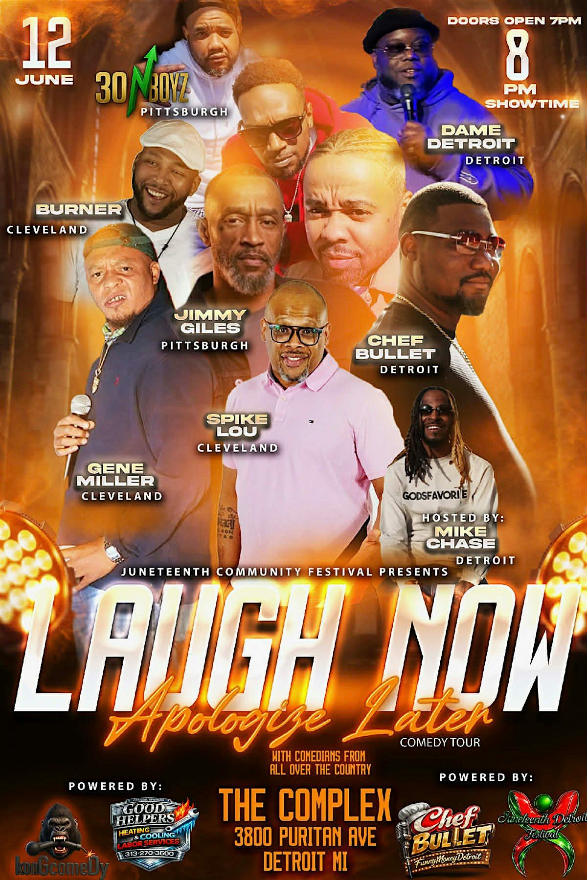 Comedians from 3 states will takeover 1 stage! Featuring the "30 n Up Boyz"! Proceeds go towards Juneteenth parade n family day
