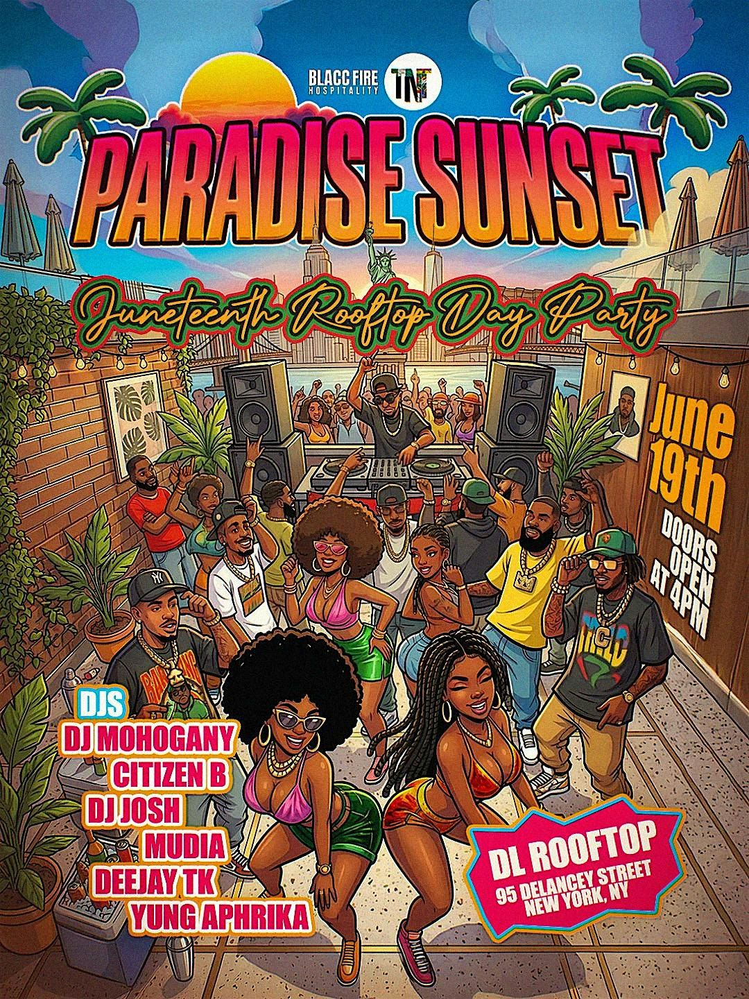 Celebrate Juneteenth Weekend with us, Paradise Sunset in the middle of New York City. Open Rooftop with some of NYC's Best DJs Providing the vibes to you.